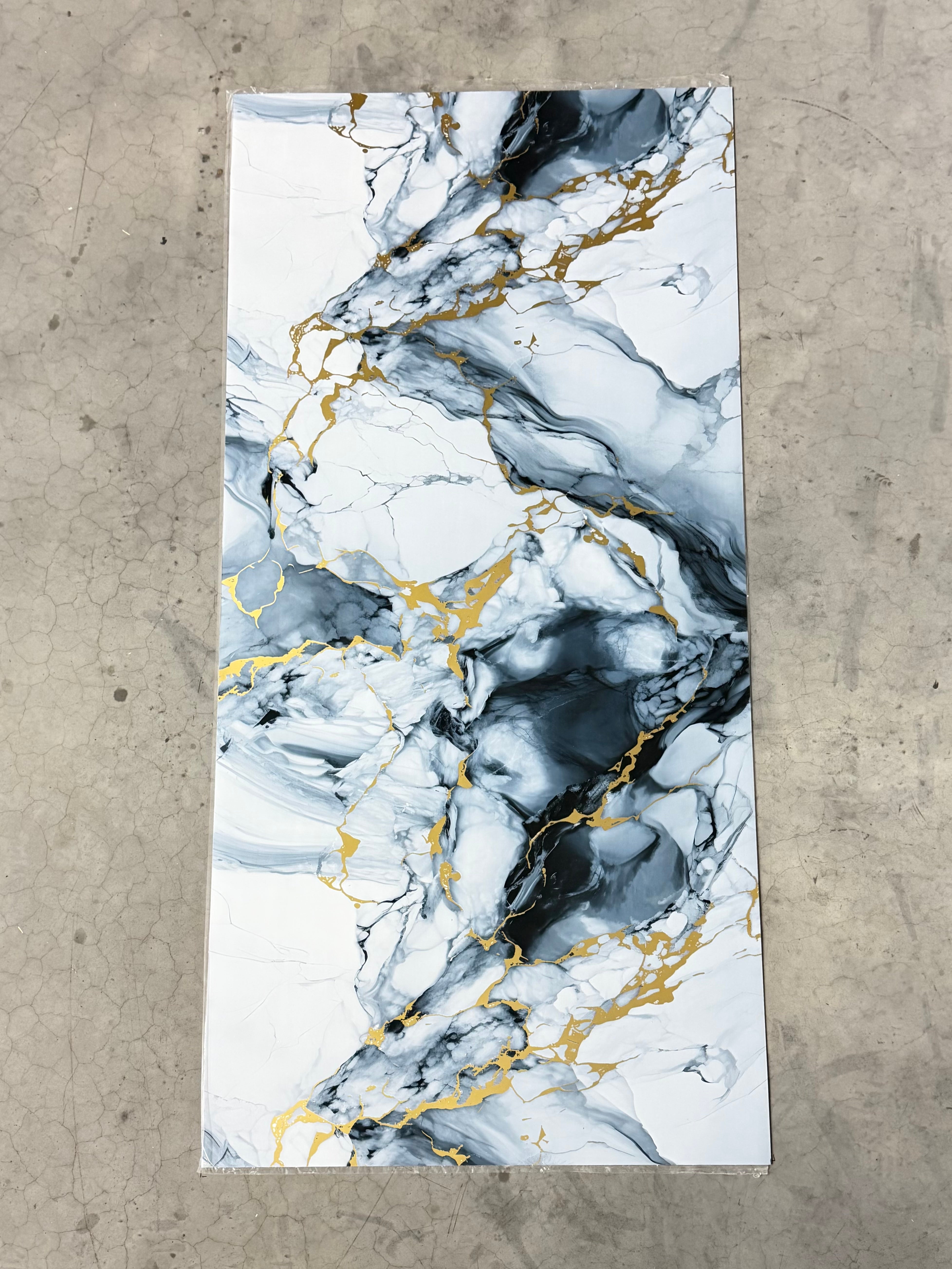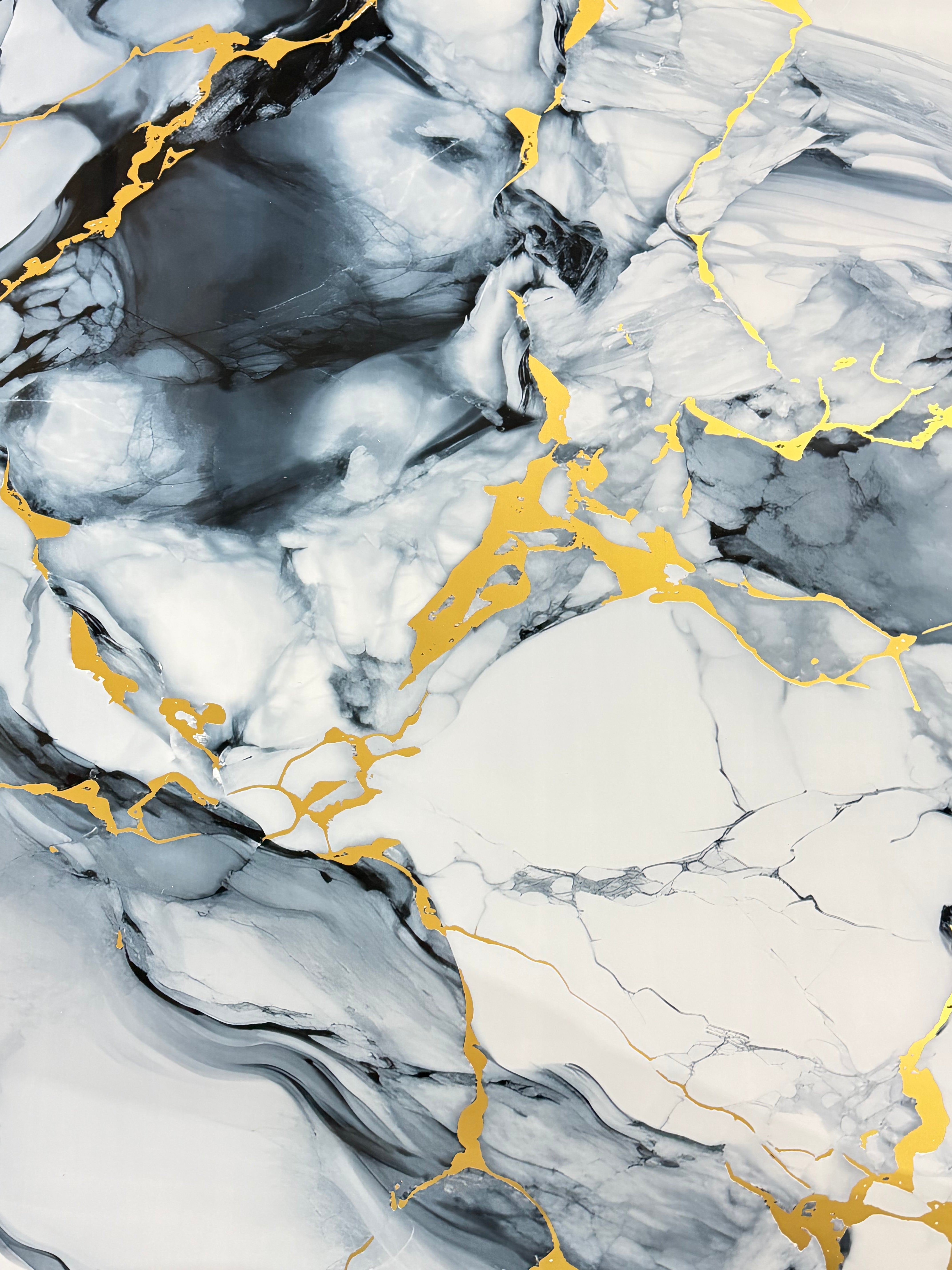 PVC wandpaneel hoogglans marmerlook wit met zwartgrijze en gouden ader – 2600 x 1220 x 3 mm