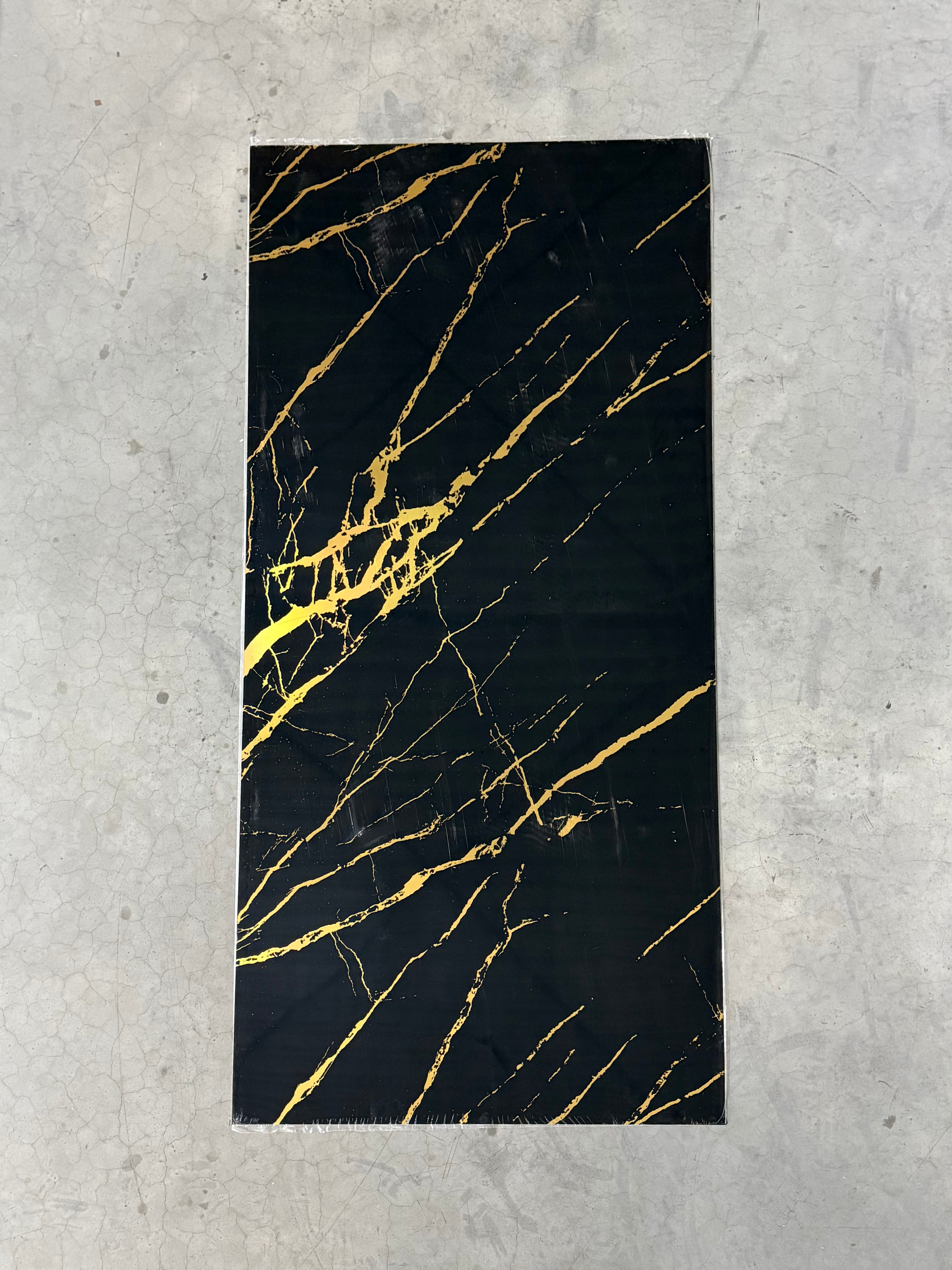 PVC wandpaneel hoogglans marmerlook zwart met gouden ader – 2600 x 1220 x 3 mm